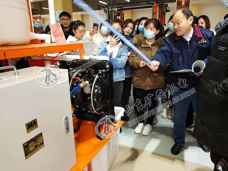 首先,公司技術(shù)總工程師張工帶領(lǐng)大家在公司產(chǎn)品展廳詳細(xì)講解了給煤機(jī)、氣動隔膜泵、無壓風(fēng)門、操車成套設(shè)備等機(jī)械類產(chǎn)品,隨后回到培訓(xùn)室又進(jìn)行了詳細(xì)的講解。